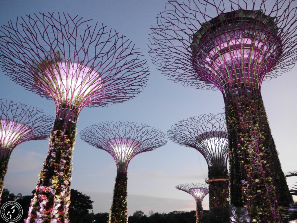 Zostajemy całkowicie pochłonięci przez Supertree. Te wielkie metalowe konstrukcje przypominające drzewa mają od 25 do 50 metrów wysokości i tak naprawdę są niczym innym, jak pionowymi ogrodami. Do tego mają także ekologiczne funkcje użytkowe; drzewa dostarczają deszczówkę do całego parku, są wyposażone w zaawansowaną technologię, dzięki której pobierają i przetwarzają energię słoneczną, która wykorzystywana jest na potrzeby parku — między innymi do fantastycznych iluminacji.