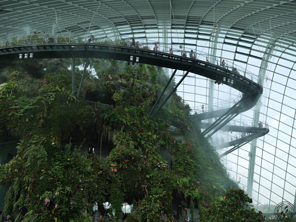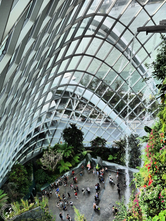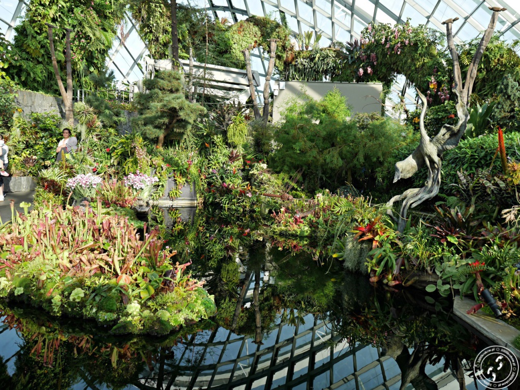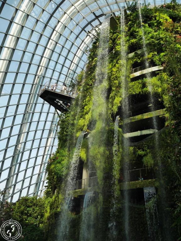Nie ma słów, które opiszą, jak ogromne wrażenie zrobiło na mnie to miejsce. Wchodząc do środka człowiek nie zostaje przygotowany na to, co tam zastanie, nie ma żadnego stopniowania napięcia, żadnego wstępu, nic... Wchodzi się do środka, czuje na skórze wilgoć i od razu oczom ukazuje się 35 metrowa, zielona konstrukcja z największym na świecie sztucznym wodospadem. To tak jakby nagle człowiek znalazł się w filmie „Avatar". Zadziera się do góry głowę i jednoczenie otwiera usta. Jestem tak tym miejscem zachwycona, że nieprzerwanie się uśmiecham. Wjeżdżamy na samą górę windą i pomału zaczynamy schodzić w dół pomostami, które oplatają konstrukcje. W ten sposób poznajemy zmieniające się warunki, czujemy różnicę temperatur i oglądamy rosnące na różnych poziomach rośliny.