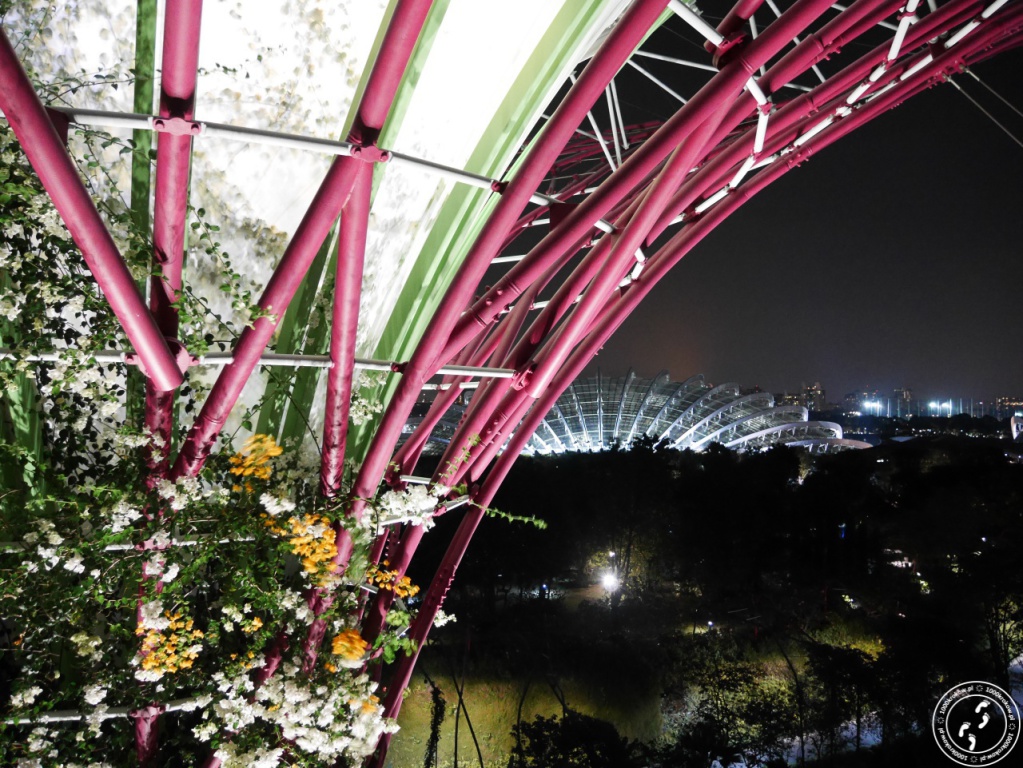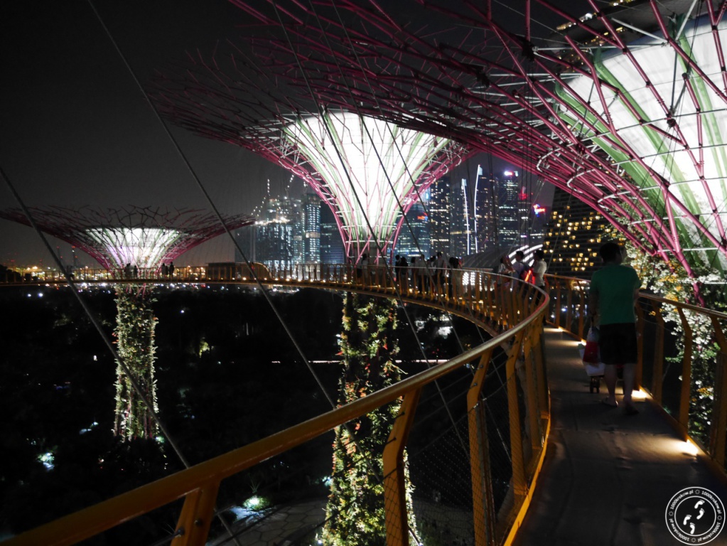 Kiedy czekamy na wjazd na górę, rozpoczyna się pokaz „światło i dźwięk". Drzewa rozbłyskują tysiącem kolorów w takt granej muzyki "Garden Rapsody", która ułożona jest specjalnie do pokazu, wrażenie jest przepiękne. Chwilę później wsiadamy do windy i znowu czujemy się jak w „Avatarze". Widok z góry jest wspaniały i niestety trudny do opisania. Każdemu, kto będzie w Singapurze, polecam skorzystanie z tej atrakcji. Jest to jedyne tego typu miejsce na świecie i nigdzie nikt nie pokaże nam czegoś takiego.